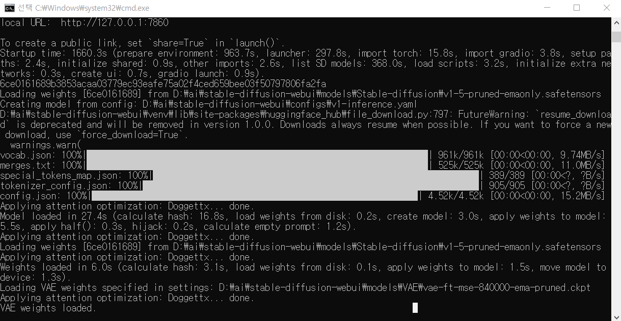 - webui-user.bat 파일을 실행합니다.
